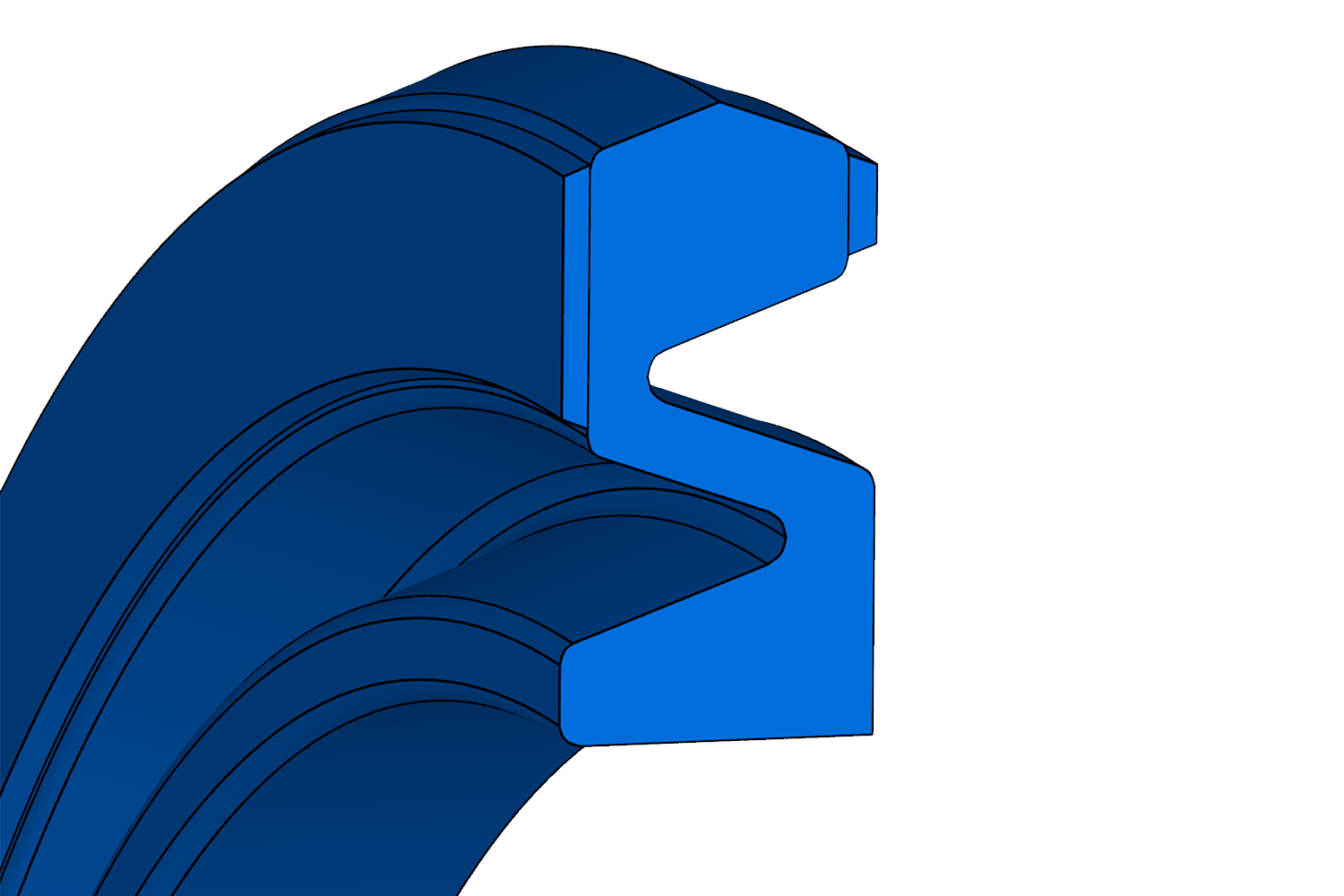 Junta de pistón de doble efecto para neumática, con dos ranuras en los flancos para favorecer su posicionamiento. El perfil en ángulo de la parte central asegura una buena estanqueidad con escasa fricción, ya que se conserva una película lubricante.
