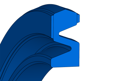 Double-acting piston seal for pneumatics, with two grooves on the flanks to facilitate positioning. The angled profile of the central part ensures good sealing with low friction, since a lubricating film is retained.