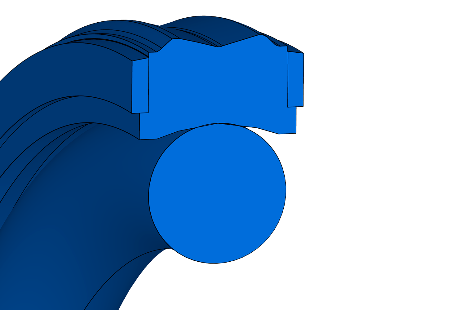 Double-acting piston seal with an O-ring as a tightening or tensioning element of the sealing ring, made of polyurethane. Part free of stick-slip effect. Wide range of sizes, including housings according to ISO 7425.
