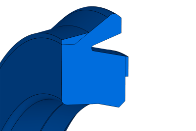Single-acting seal with asymmetric profile for pneumatics. The lower lip has a greater length and thickness, guaranteeing a good fixation of the part at the bottom of its housing.