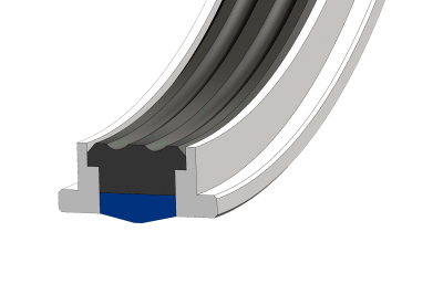 It consists of a sliding ring, confined by guides and energized by an elastomer profile. This part is suitable for applications where pressure shocks occur.