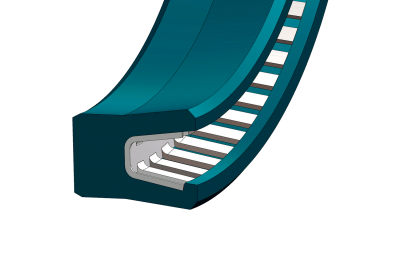 Single-acting seal consisting of an energized collar with a metal spring that maintains the circular geometry of the collar around its entire perimeter, both inside and outside. The sealing lip has a protrusion on the inside that holds the spring in place. At low pressure, the force of the metal spring provides the seal closure while, as the pressure increases, the collar is energized by the fluid pressure itself.