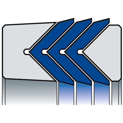 This packing consists of a pressure ring, a minimum of 3 elastomer intermediate rings and a cover or support ring.