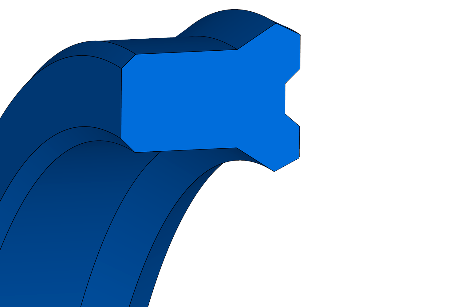 Single-acting, symmetrical profile polyurethane compact seal for standardized housings, according to ISO 5597, among others.