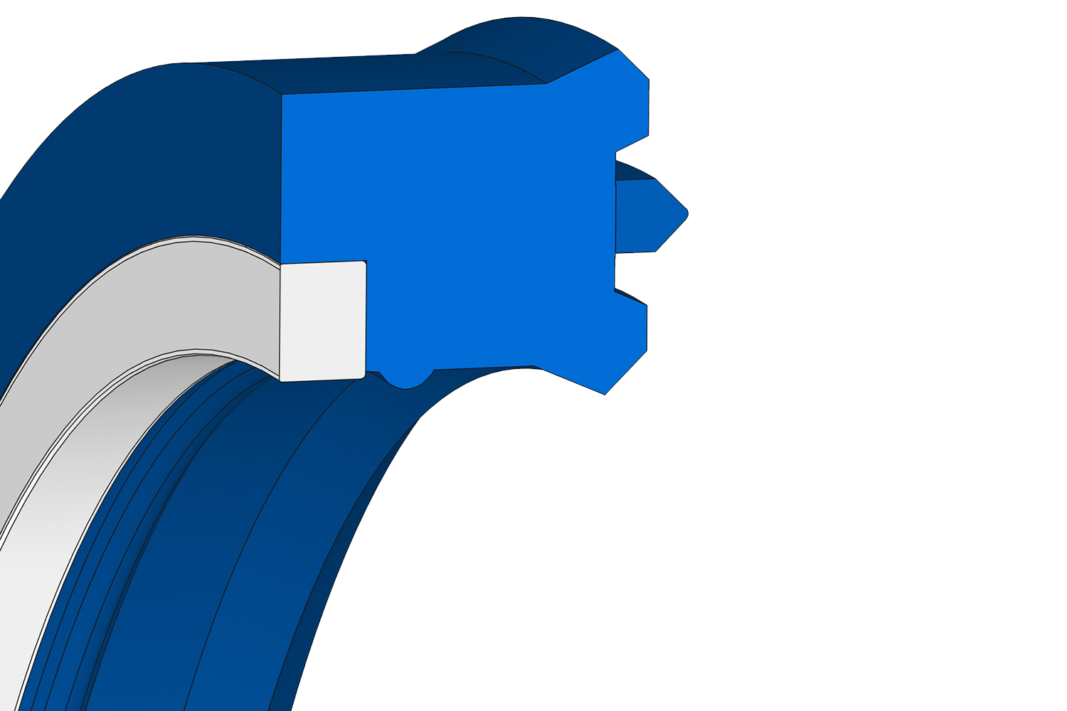 Compact polyurethane symmetrical profile gasket, with single-acting anti-extrusion ring, for standardized housings according to ISO 5597, among others.