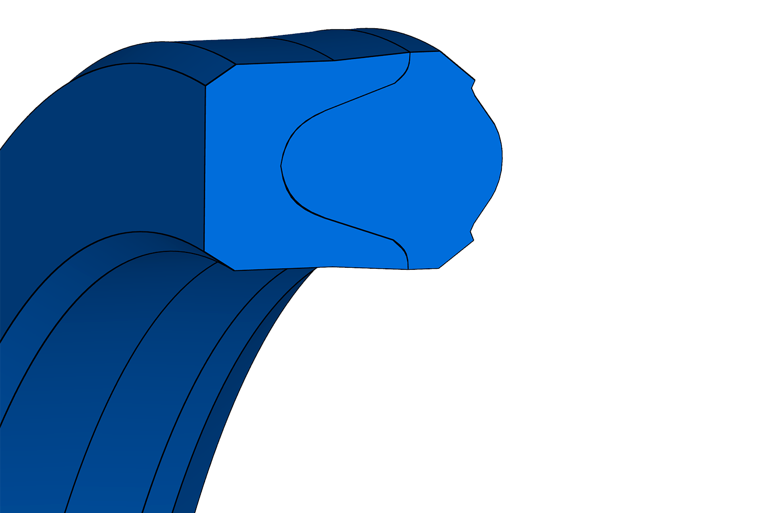 Compact stem seal with fabric-reinforced heel. Wide range of sizes, including housings according to ISO 5597, among others.