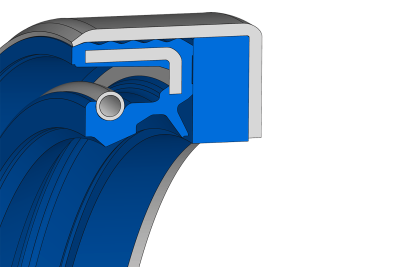 Simmerring® seal reinforced with a polyurethane seal that allows slight axial movements.