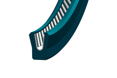 Model DR 118 is a seal for static or dynamic applications of low rotation, consisting of a PTFE collar (with loads) and a metal spring that tensions the collar and maintains its geometry around its entire perimeter. Both lips of the collar have a protrusion on the inside to hold the spring in place.