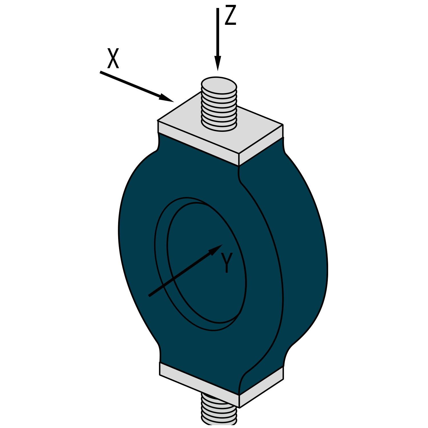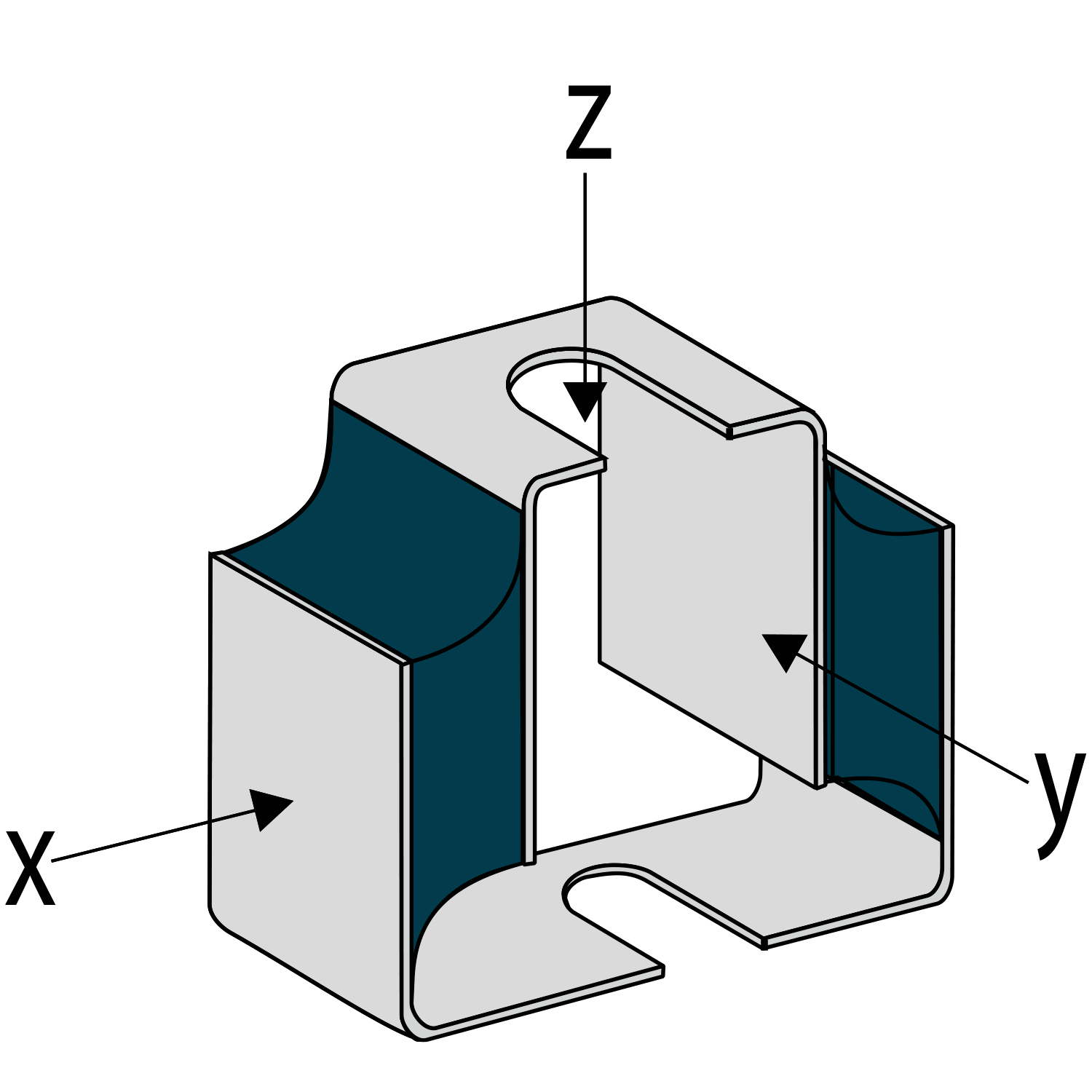 O-brackets are soft in X, slightly stiffer in Y and have maximum stiffness in Z.