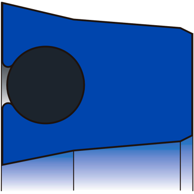 Se añade una junta tórica de elastómero que ejerce una tensión uniforme del labio en las zonas de estanqueidad, incluso cuando no hay presión en el medio, a la vez que aporta una elevada capacidad de carga de choque.
