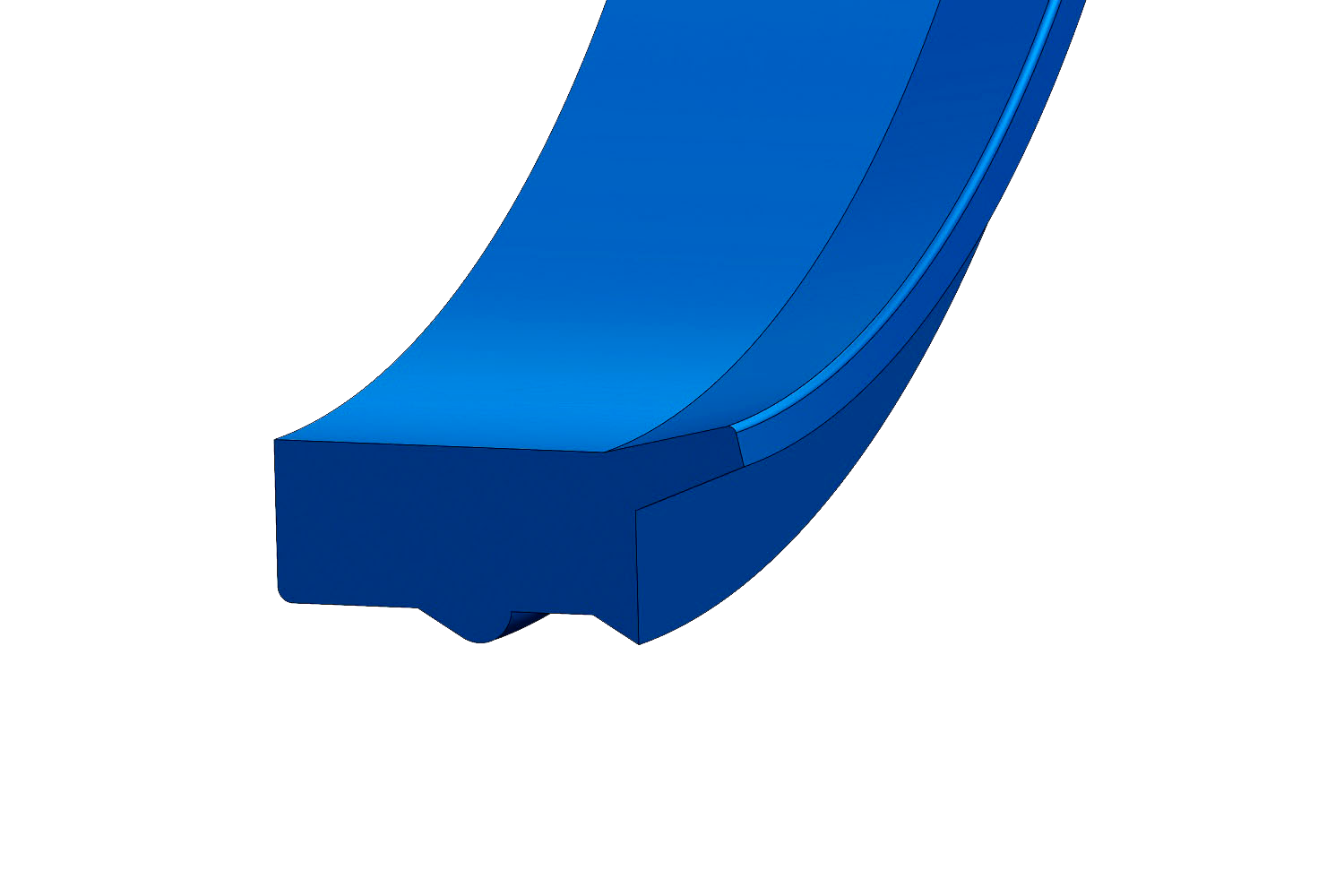 Ce profil intègre une nervure sur le diamètre extérieur qui permet de fixer la pièce dans son logement. Il possède une bride avant qui lui permet de travailler dans des conditions de contamination sévère. La lèvre arrondie permet au fluide de retourner dans le cylindre et permet de l'utiliser dans des applications pneumatiques.