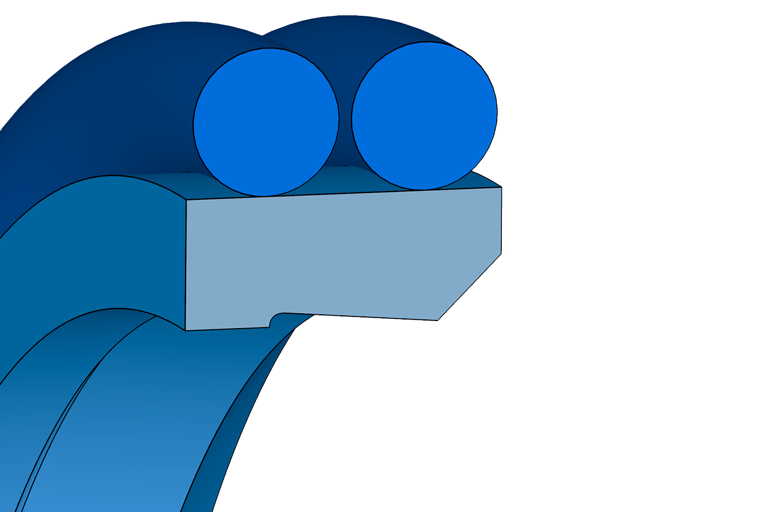 Racleur à faible frottement composé d'un anneau en PTFE (avec profil de racleur et bord d'étanchéité) et de deux joints toriques comme éléments de serrage. Ce racleur est de préférence utilisé en combinaison avec les joints de tige Merkel Omegat OMS-MR PR ou les colliers T20.