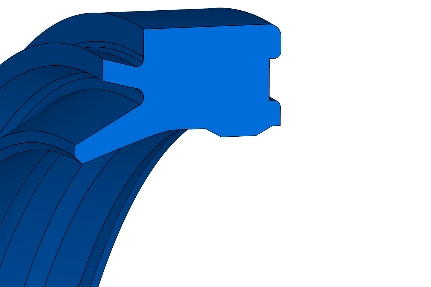 Racleur doté d'une bride de protection supplémentaire et de stries d'appui pour éviter les torsions. Extrémité de la lèvre légèrement arrondie pour permettre la formation d'un film lubrifiant sur la tige du piston. Large gamme de tailles, y compris des logements conformes à la norme ISO 6195 type A.