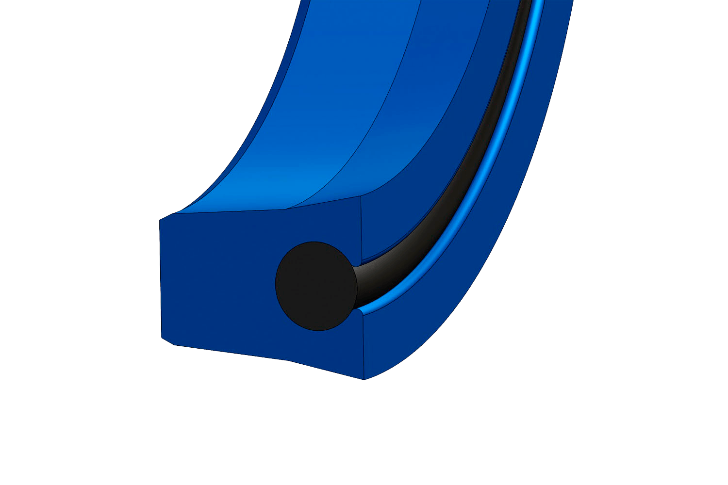 Un joint torique en élastomère est ajouté pour assurer une tension uniforme de la lèvre dans les zones d'étanchéité, même en l'absence de pression dans le fluide, tout en offrant une capacité de charge de choc élevée.