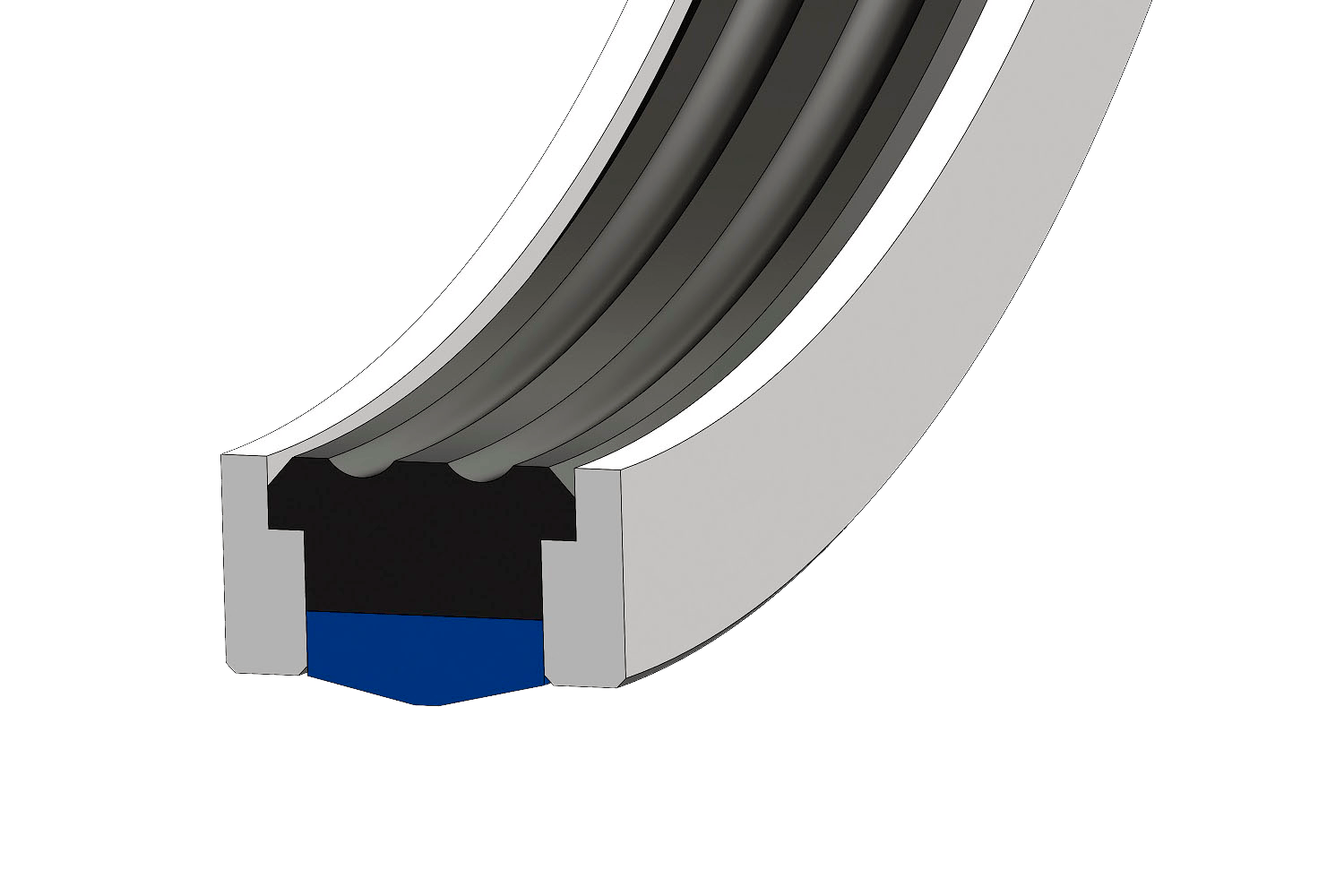 Il se compose d'un anneau glissant, confiné par des anneaux de support dans le boîtier, qui est excité par un profil en élastomère. Cette pièce convient aux applications où des chocs de pression se produisent.