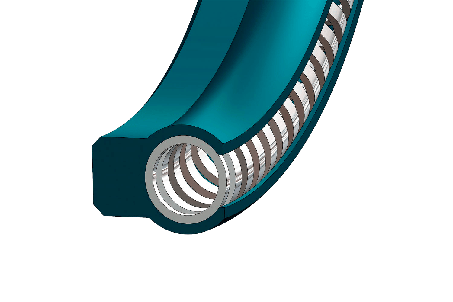 Joint à simple effet constitué d'un collier alimenté par un ressort hélicoïdal qui maintient la géométrie circulaire du collier sur tout son périmètre, tant à l'intérieur qu'à l'extérieur. À basse pression, la force du ressort métallique assure la fermeture du joint tandis que, lorsque la pression augmente, le collier est alimenté par la pression du fluide lui-même.