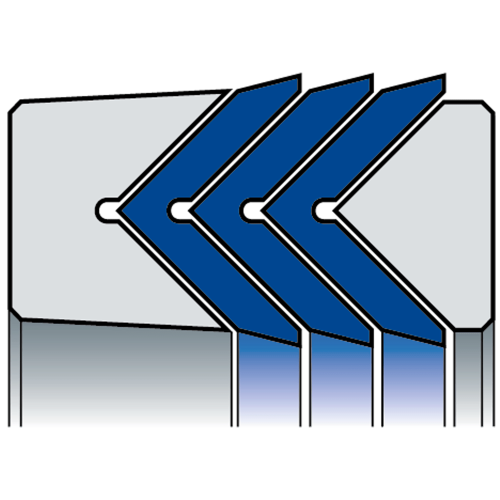 Cette garniture se compose d'une bague de pression, d'un minimum de 3 bagues intermédiaires en élastomère et d'une bague de couverture ou d'appui.