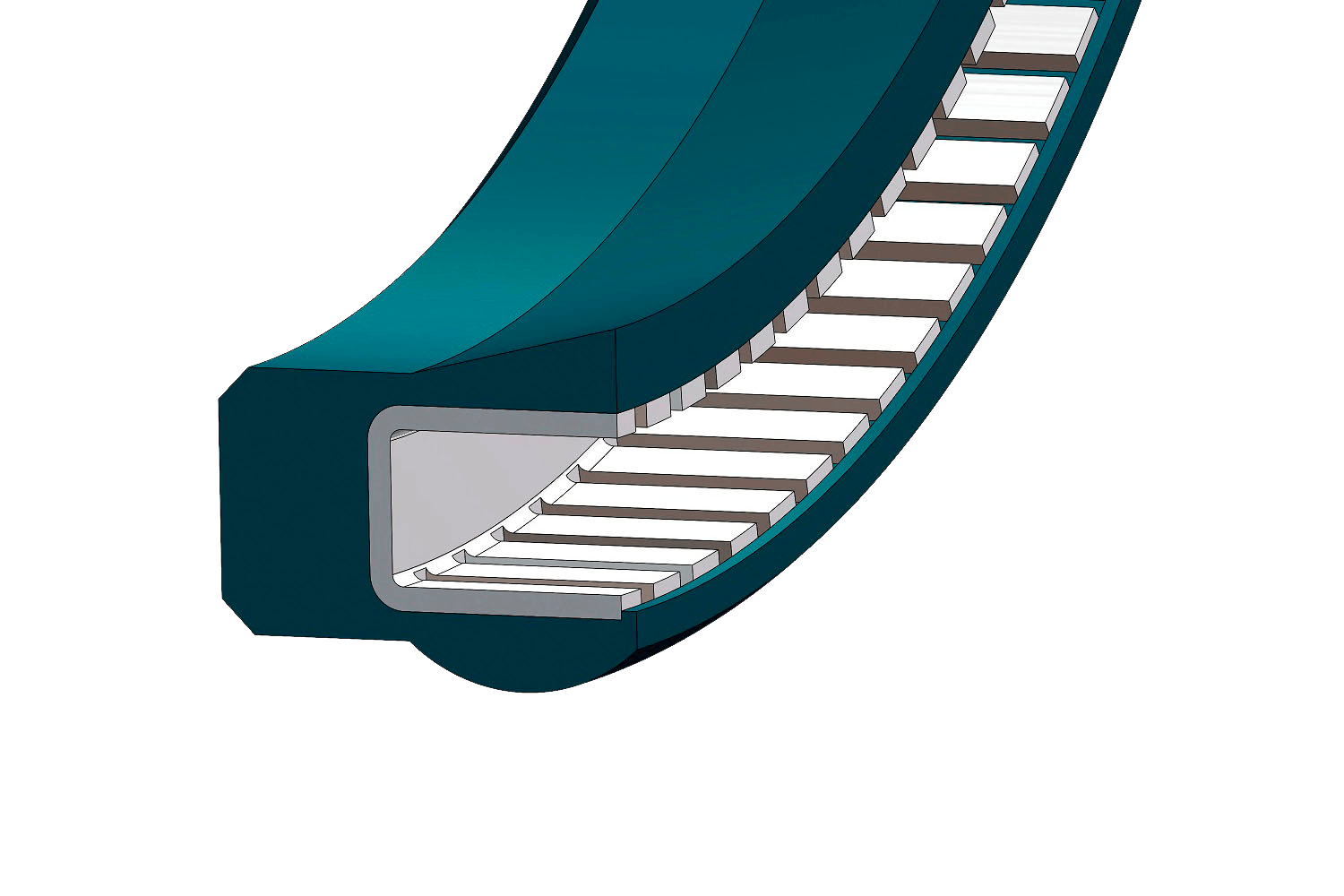 Le modèle DS 154 est un joint énergisé à simple effet avec un ressort en forme de U. Ce profil est recommandé pour les applications dynamiques. Il s'agit d'un profil recommandé pour les applications dynamiques. La pièce est conçue avec un bourrelet allongé pour un meilleur comportement à l'extrusion. La conception biseautée de la lèvre intérieure assure un effet de raclage et d'essuyage dans les milieux abrasifs ou visqueux. Les nervures sur le diamètre extérieur permettent de fixer la pièce dans son logement.