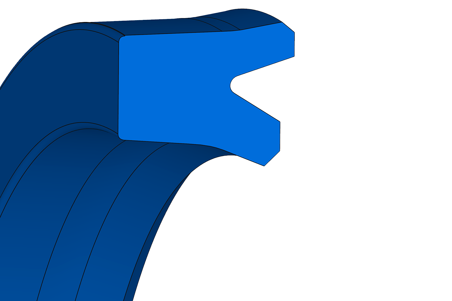 Collier à profil asymétrique en élastomère avec une lèvre intérieure plus courte que la lèvre extérieure et conçu pour assurer la stabilité de la pièce dans son logement. Il est généralement utilisé comme deuxième joint de tige.