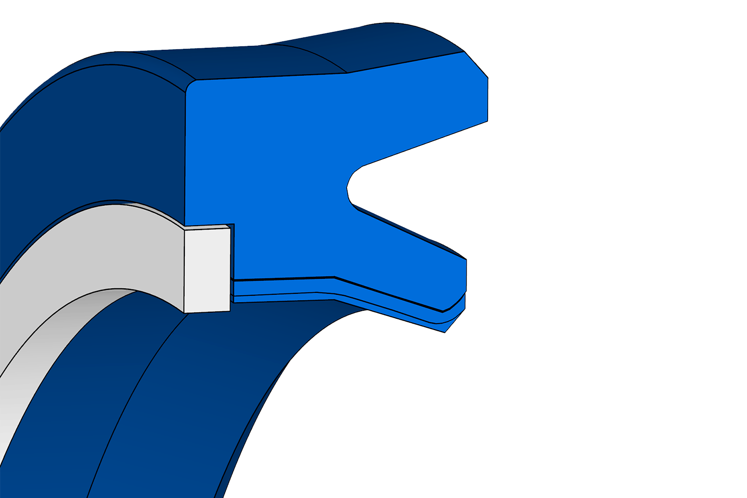 Joint à lèvre à profil asymétrique pour applications hydrauliques et pneumatiques à simple effet, avec bague anti-extrusion et renforcement en fibre de coton dans toute la zone de contact de la lèvre avec la tige du piston.
