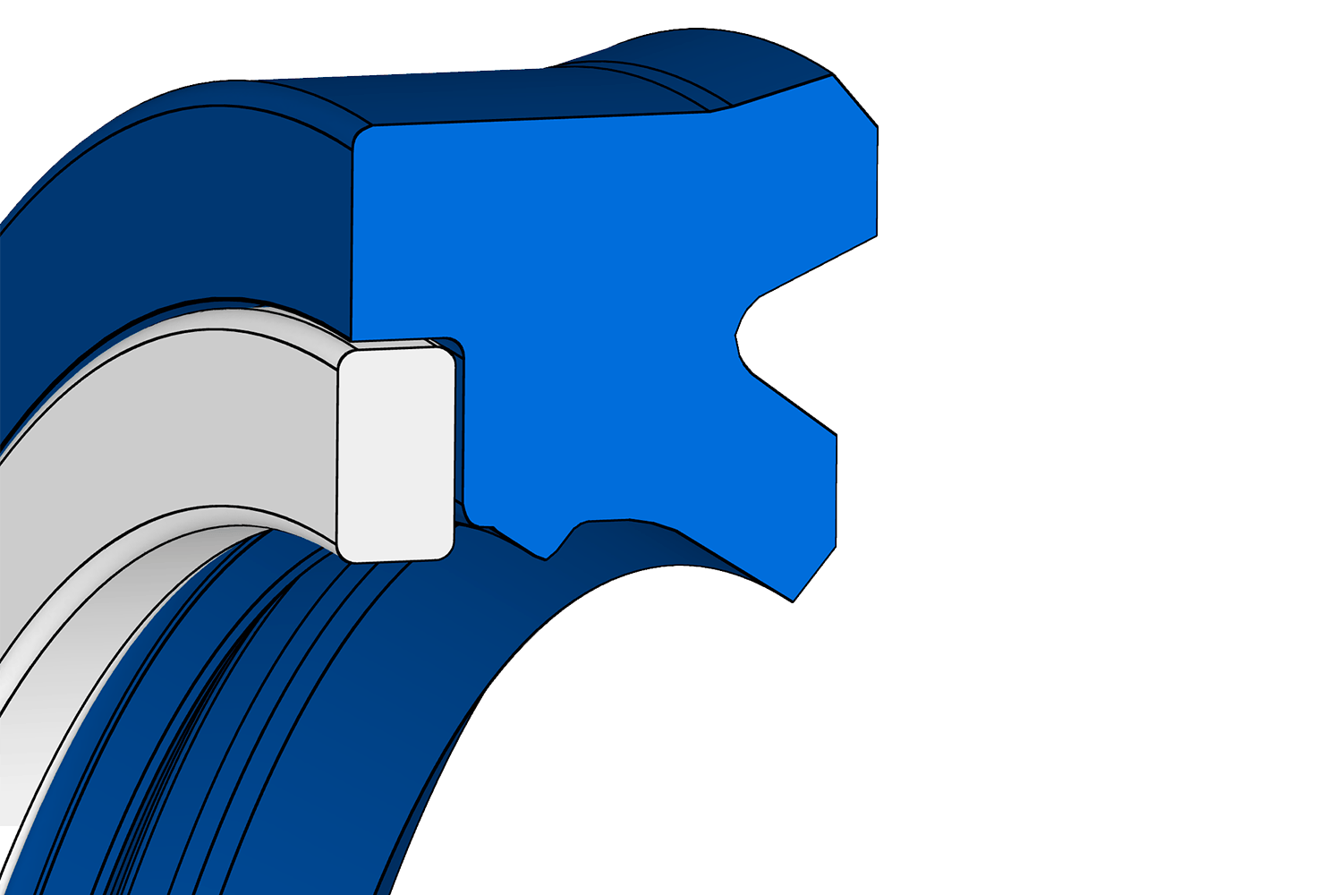Joint à lèvres à profil asymétrique, en polyuréthane, avec bord d'étanchéité au talon et anneau anti-extrusion.