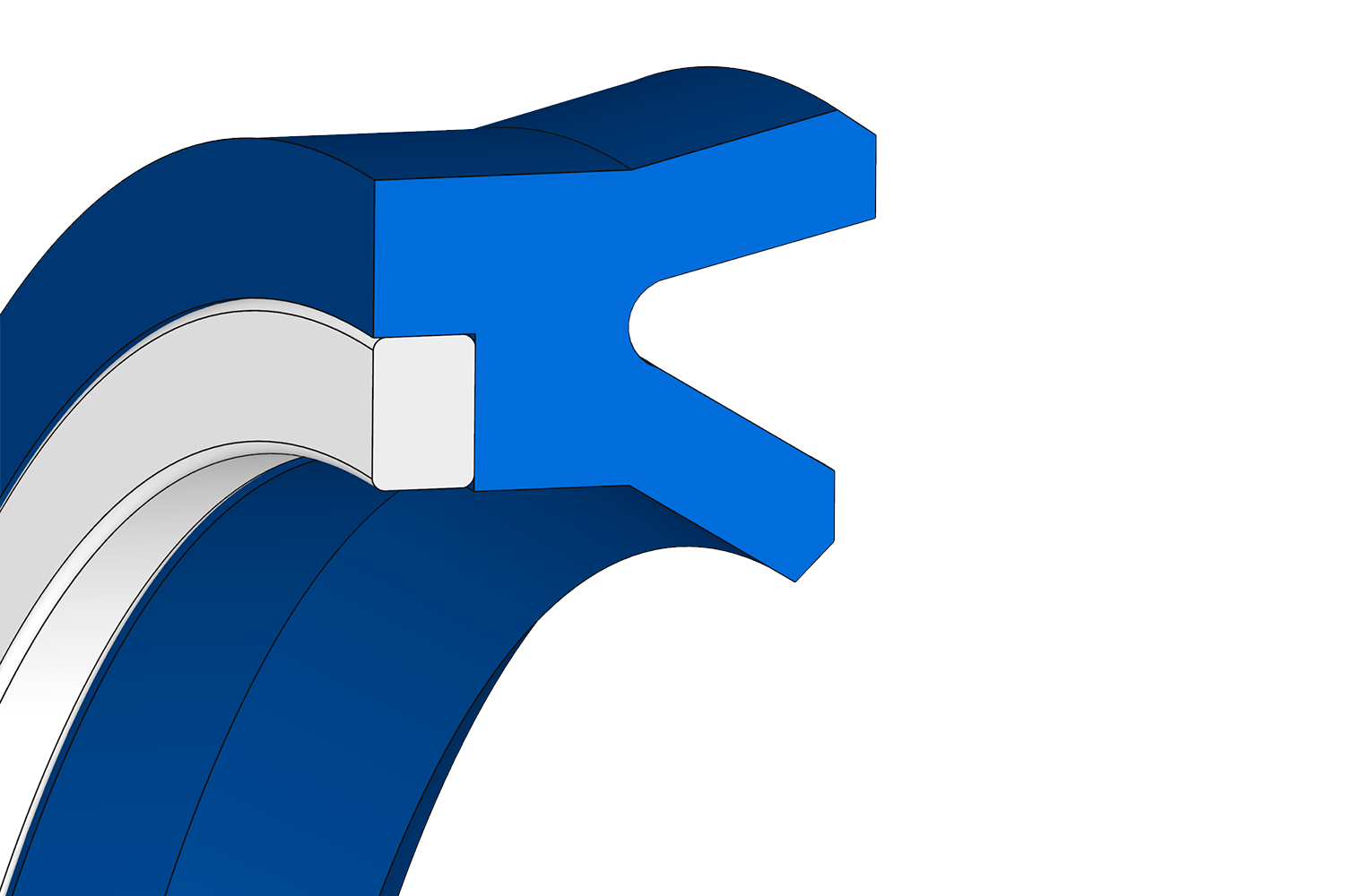 Joint à lèvre avec profil asymétrique pour les applications à simple effet et avec bague anti-extrusion.