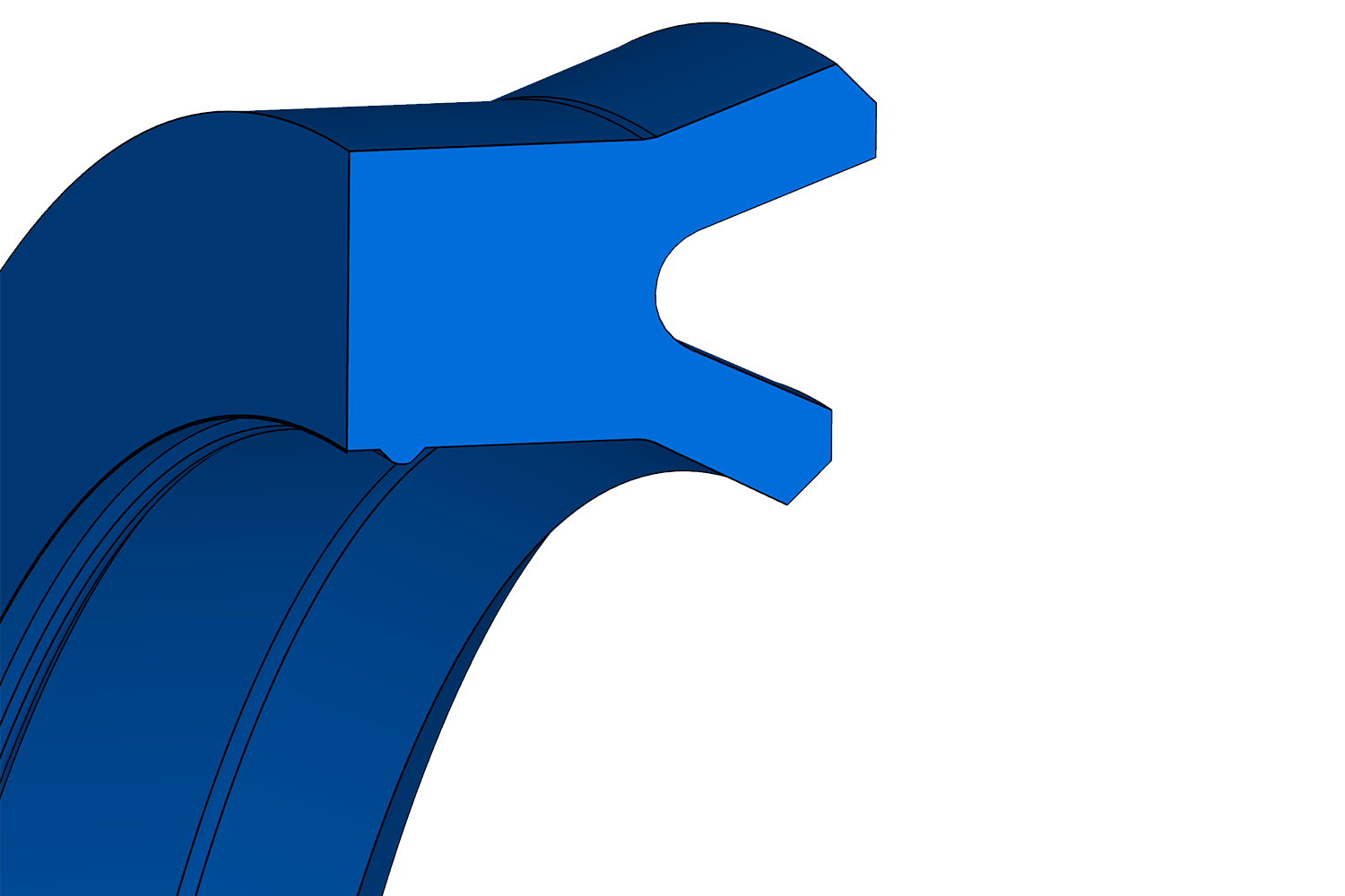 Joint à lèvres avec profil asymétrique pour les applications à simple effet et bord d'appui supplémentaire au talon.