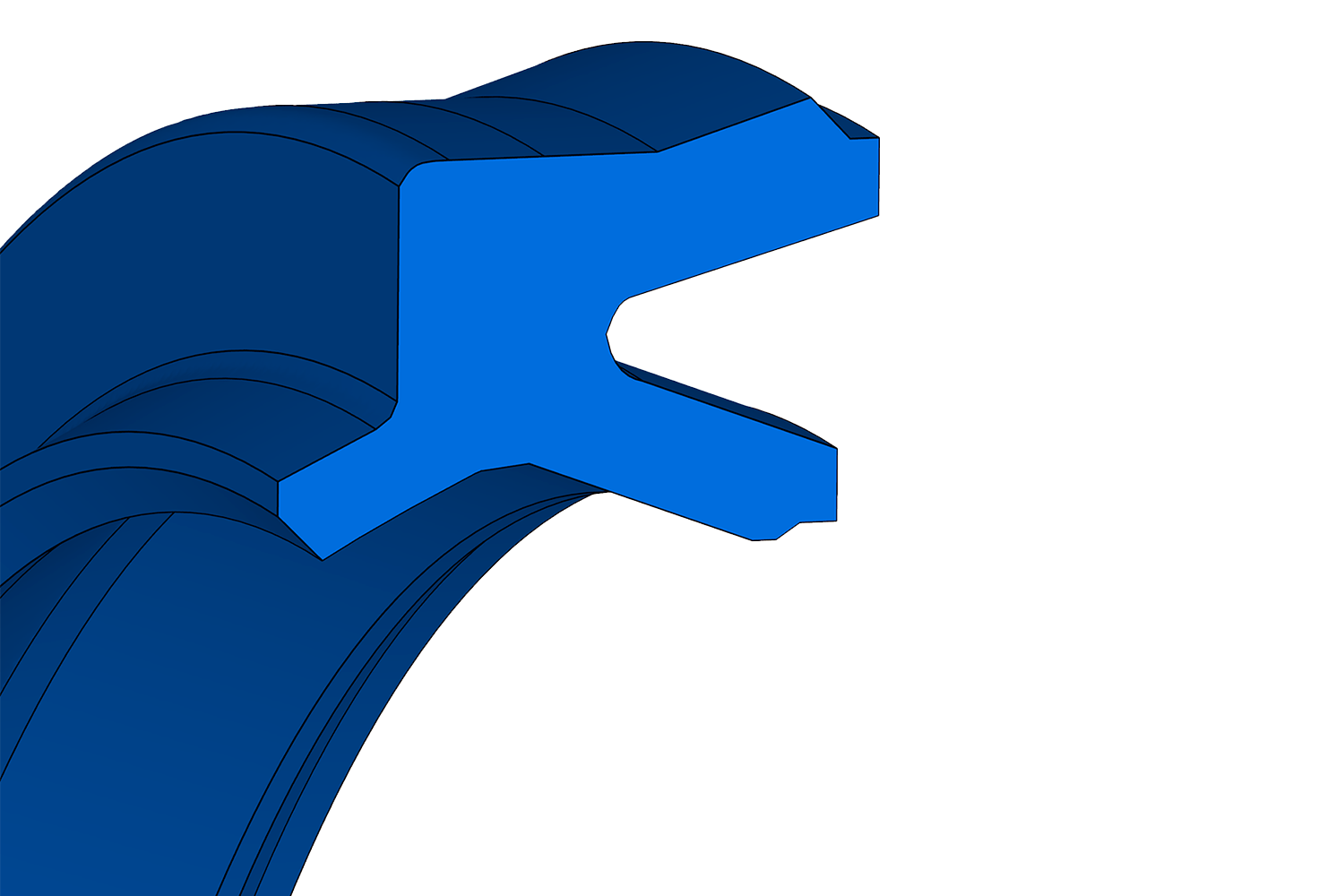 Joint combiné et élément racleur, sans logement métallique et avec des lèvres conçues pour les pneumatiques, qui maintiennent un film lubrifiant sur la tige du piston. Le NIPSL 210 est conçu pour les vérins de petit diamètre et peut être monté manuellement dans son logement.