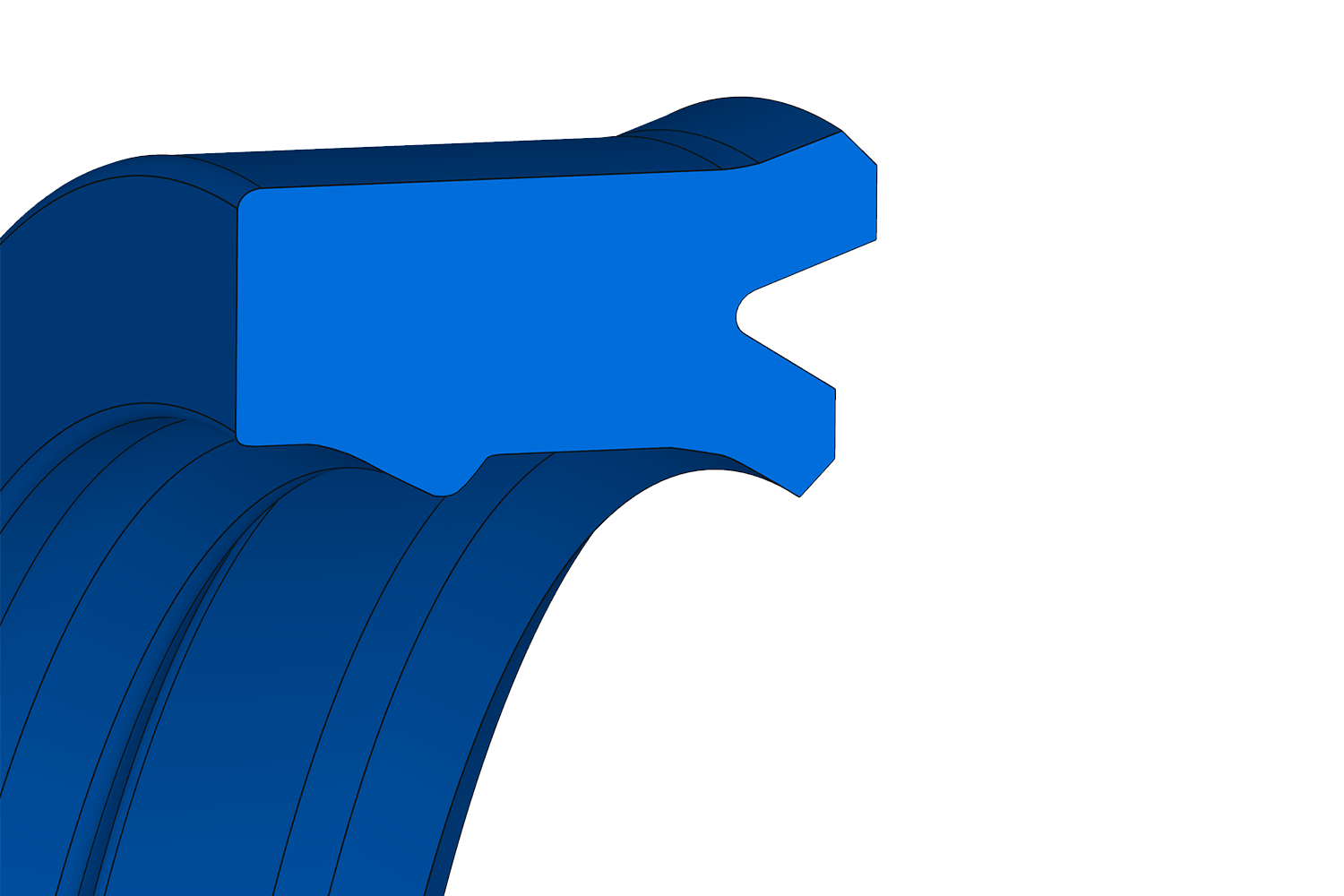 Joint à lèvre à profil asymétrique, en polyuréthane, avec bord d'étanchéité au talon et pour applications à simple effet.
