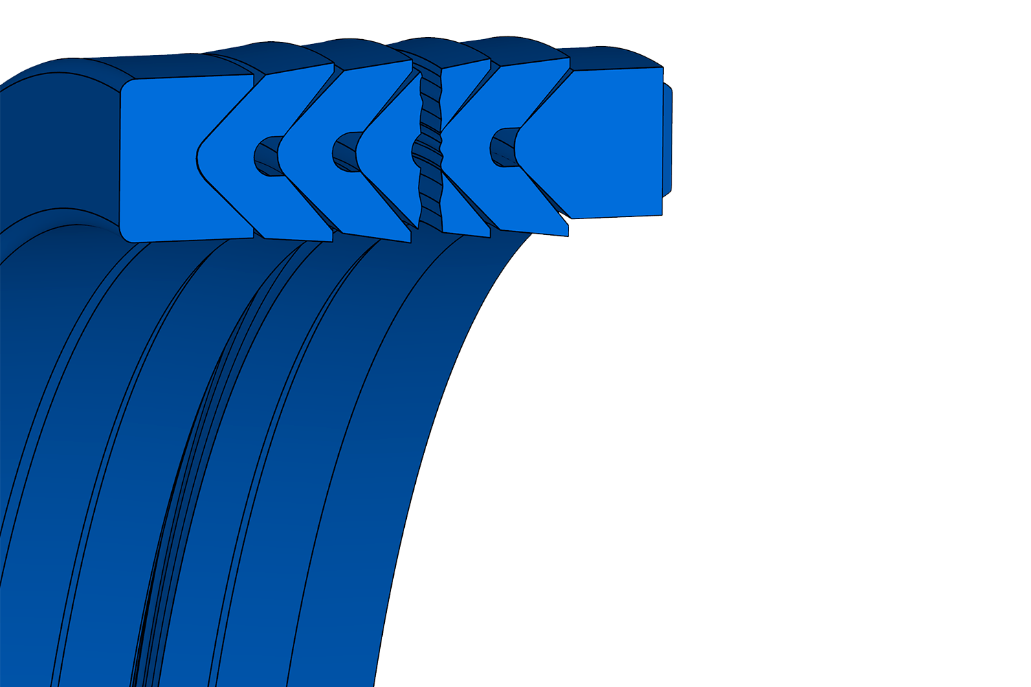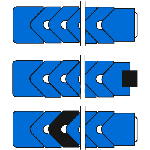 Garniture composée d'une bague de pression, d'au moins trois joints en V et d'une bague de support. Il existe trois versions différentes :