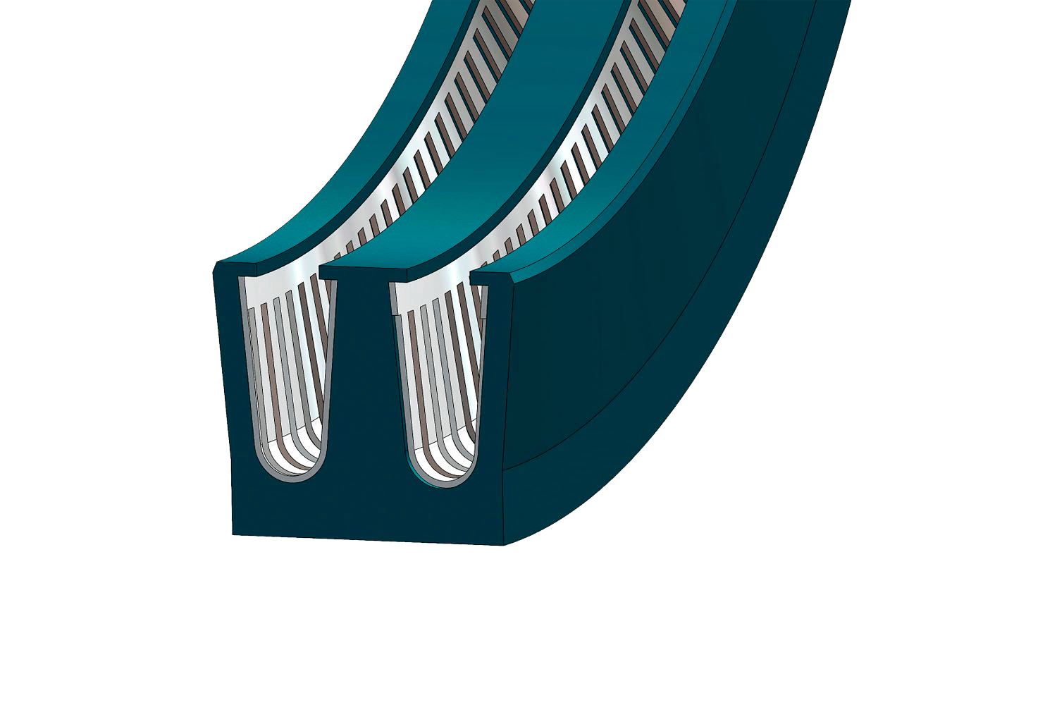 Le modèle DR 118 BB est un joint pour applications statiques ou dynamiques à faible rotation, composé d'un double collier en PTFE (avec charges) et d'un ressort métallique qui tend le collier et maintient sa géométrie sur tout son périmètre. Les lèvres des colliers ont une saillie à l'intérieur pour maintenir le ressort en place.