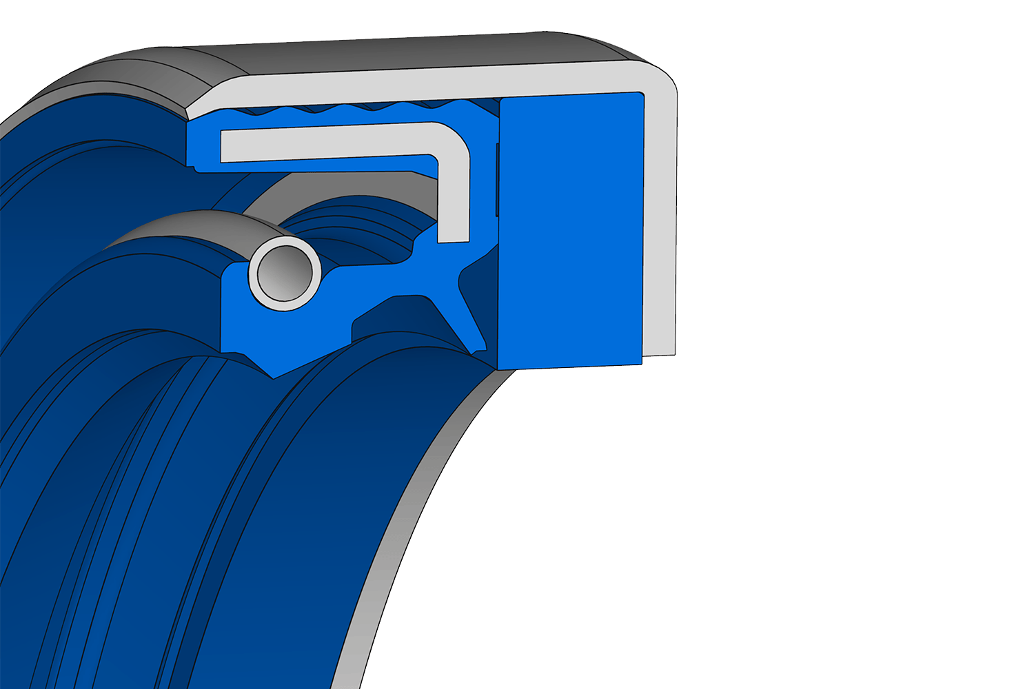 Joint Simmerring® renforcé par un joint en polyuréthane qui permet de légers mouvements axiaux.