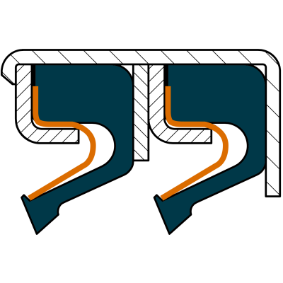 Joints à double poche métallique, double lèvre chanfreinée et ressort lamellaire vulcanisé dans l'élastomère lui-même.