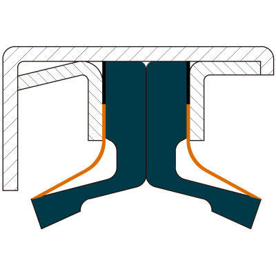 Joints à double poche métallique, double lèvre chanfreinée et ressort lamellaire vulcanisé dans l'élastomère lui-même.