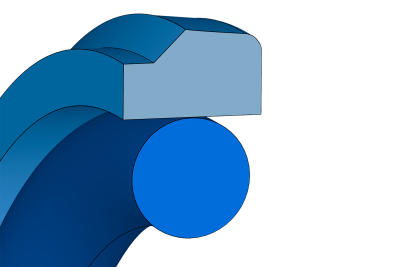 Joint de piston à simple effet avec un joint torique comme élément de serrage ou de tension de la bague d'étanchéité, en PTFE avec charges. Pièce exempte d'effet stick-slip.