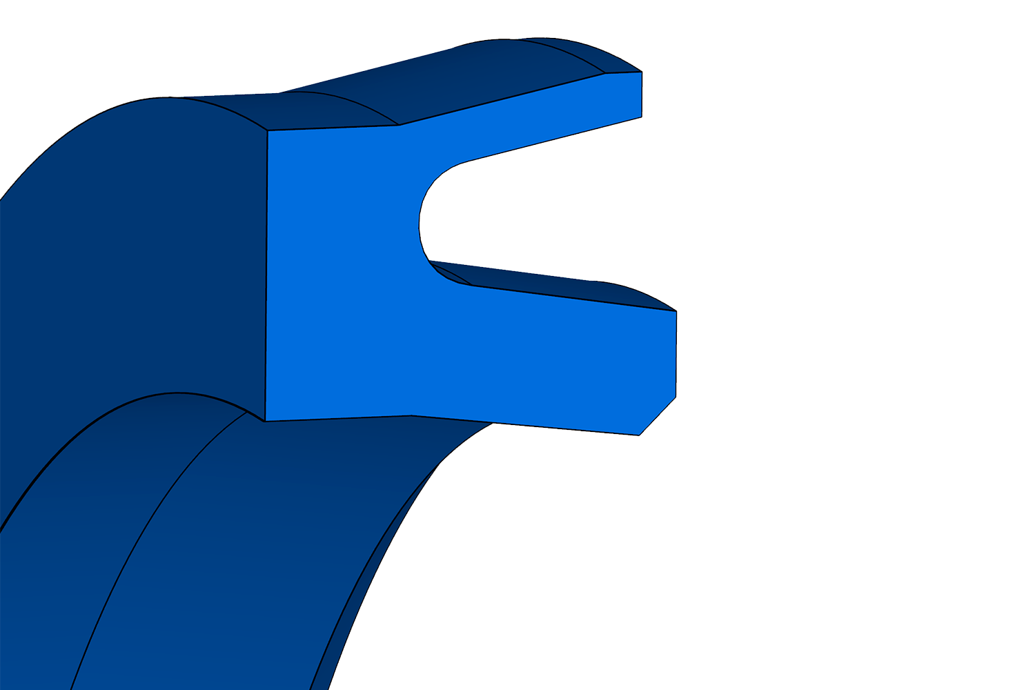 Joint simple effet à profil asymétrique pour pneumatiques. La lèvre inférieure a une longueur et une épaisseur plus importantes, garantissant une bonne fixation de la pièce au fond de son logement.
