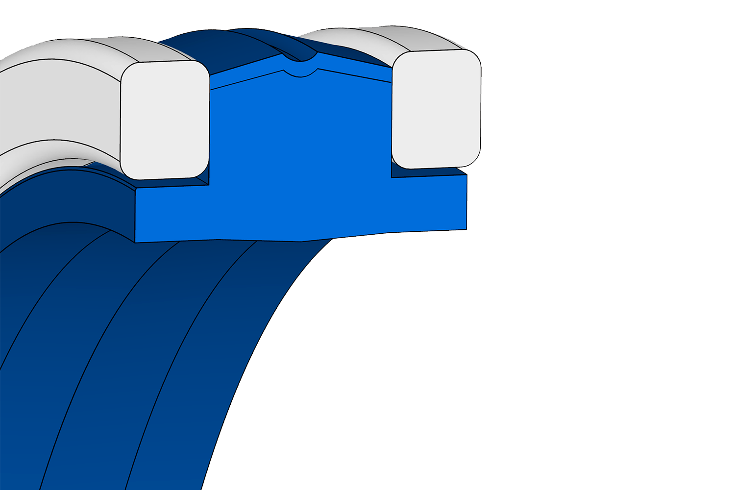 Joint compact de piston à double effet, composé d'un élément d'étanchéité en NBR renforcé de tissu et de deux bagues anti-extrusion en POM.