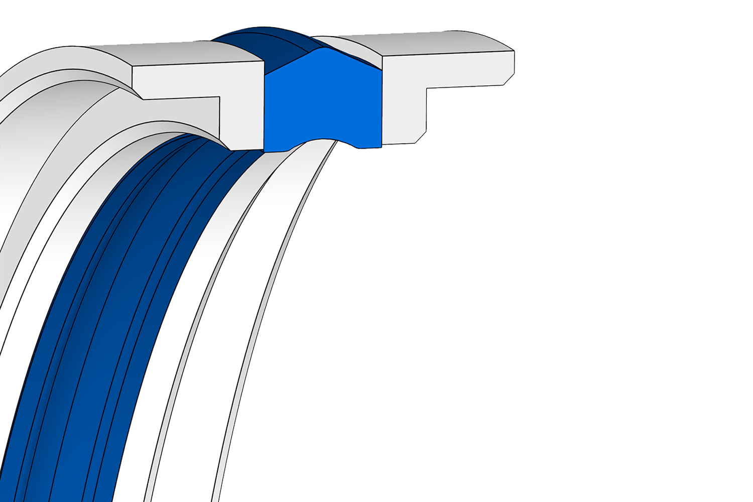 Joint de piston compact à double effet, composé d'un anneau de glissement en polyuréthane et de deux anneaux de guidage en POM. Pièce conçue pour les logements conformes à la norme ISO 6547.