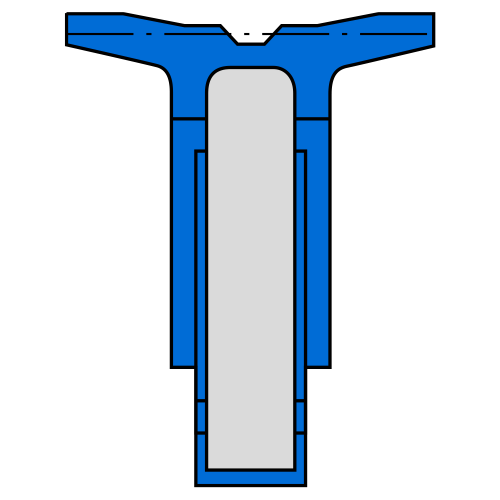 Piston complet, pour vérins à double effet, avec un corps en acier sur lequel les lèvres d'étanchéité sont vulcanisées, qui sont conçus pour la pneumatique avec une fonction supplémentaire de guidage et présentent des canaux radiaux sur leur partie avant pour une meilleure pressurisation en fin de course. Le piston est fixé à l'extrémité de la tige par un écrou et une rondelle.