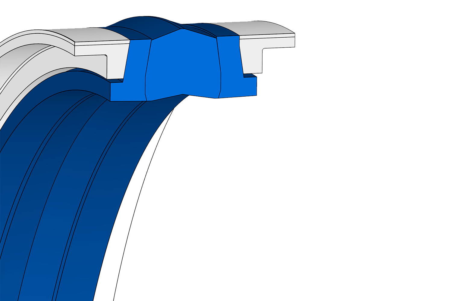 Junta compacta de pistón de doble efecto formada por un anillo de estanqueidad de NBR, dos aros antiextrusión de elastómero de poliéster TPE y dos piezas de guiaje de poliamida que evitan el contacto del pistón con la camisa del cilindro. Pieza de elevada resistencia a la extrusión por picos de presión.