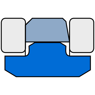 Junta compacta de pistón de doble efecto formada por un anillo de deslizamiento de PTFE con carga de bronce, un perfil de NBR como elemento de apriete del anillo de estanqueidad y dos aros antiextrusión de POM. Pieza exenta del movimiento a tirones o efecto stick-slip y elevada resistencia a la extrusión por picos de presión.