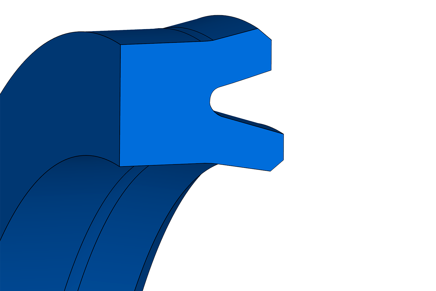 Junta de labios de perfil asimétrico en poliuretano, para pistones de simple efecto. Amplia gama de medidas, incluyendo alojamientos según ISO 5597.