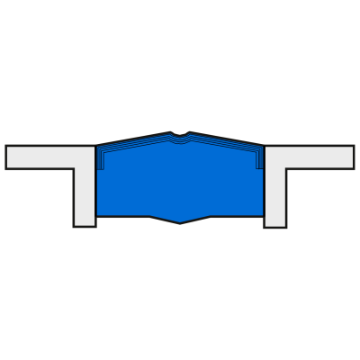 Junta compacta de pistón y de doble efecto, formada por un elemento de estanqueidad de NBR reforzado con tejido y dos anillos de guiaje, que a la vez son antiextrusión.